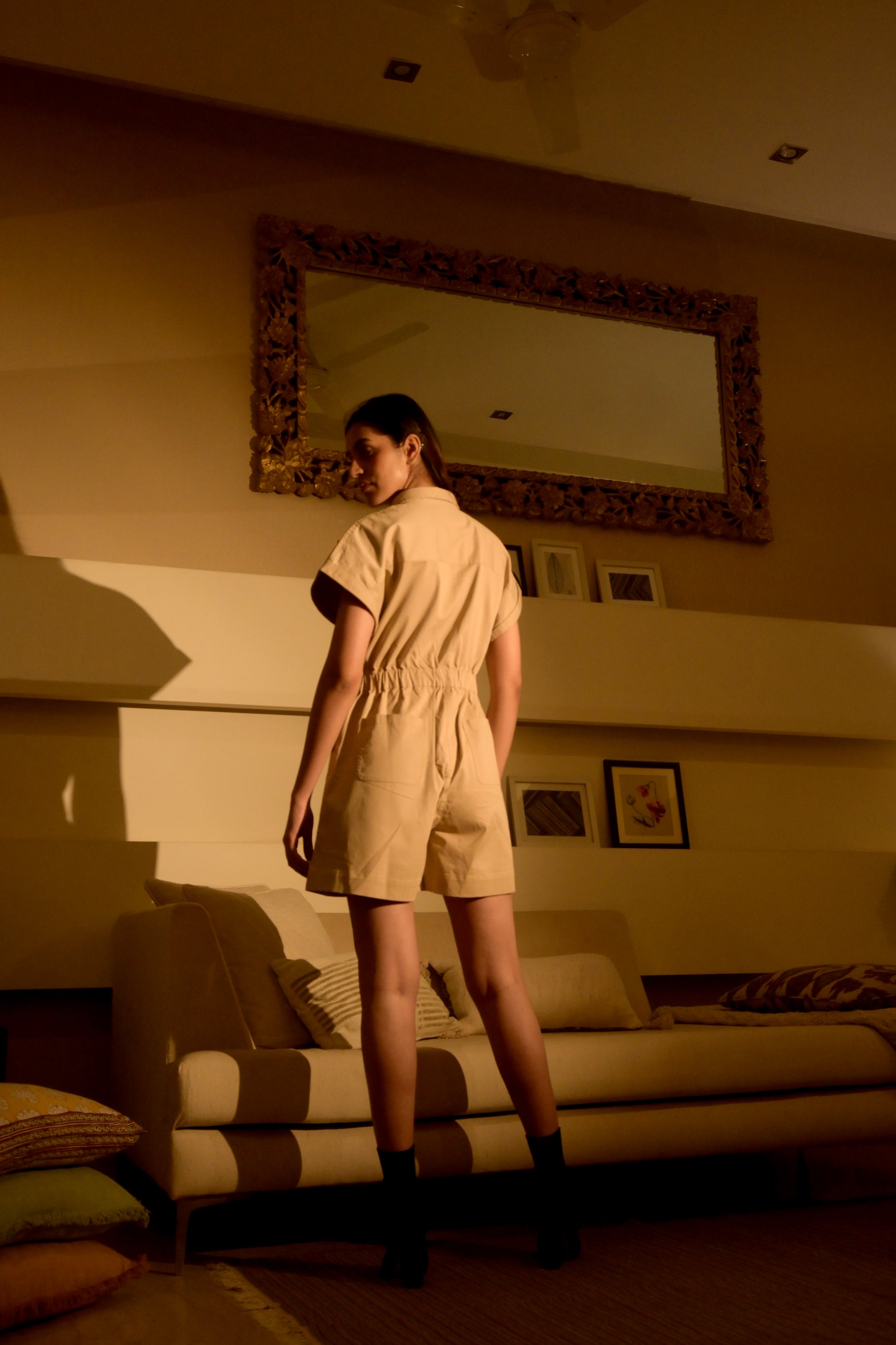 Its above-the-knee length makes it versatile for various occasions, while its easy-to-style nature allows you to effortlessly accessorize with your favorite summer accessories. Whether you're heading to brunch or a day out with friends, this playsuit is your go-to option for a look that pops without the hassle of putting together an entire outfit.